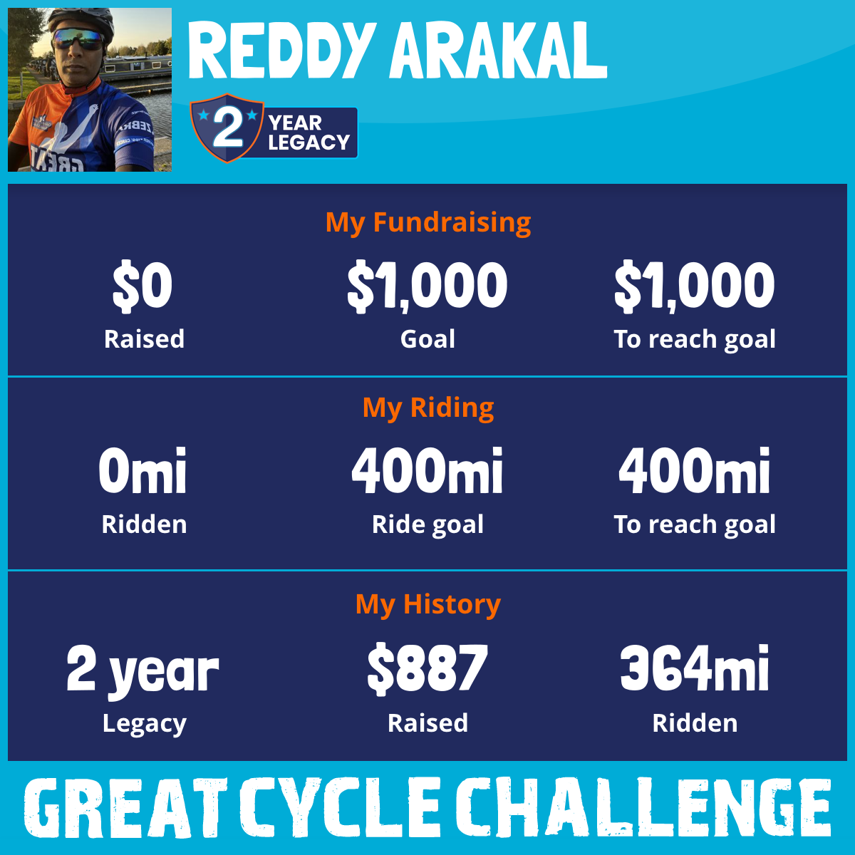 I am riding 300 mi in memory of In remember of my uncle who is suffering cancer. This ride for his moral support and speedy recover.. Please sponsor me and support my challenge to fight kids' cancer and save little lives.