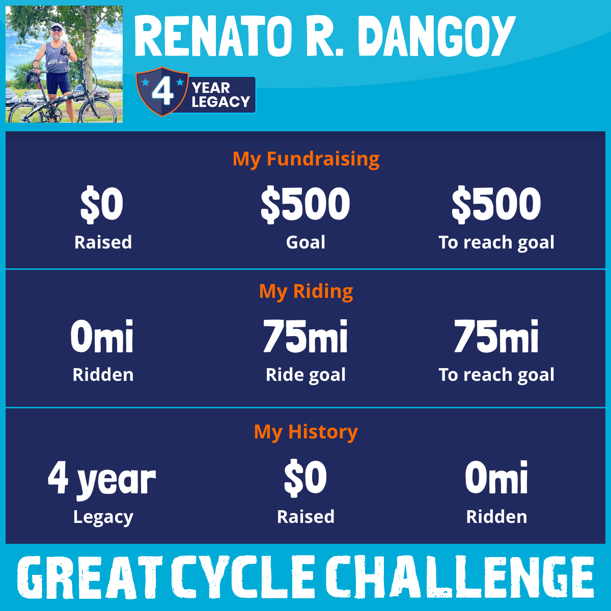 I am riding 75 mi in memory of my myself, Jojoy. Please sponsor me and support my challenge to fight kids' cancer and save little lives.