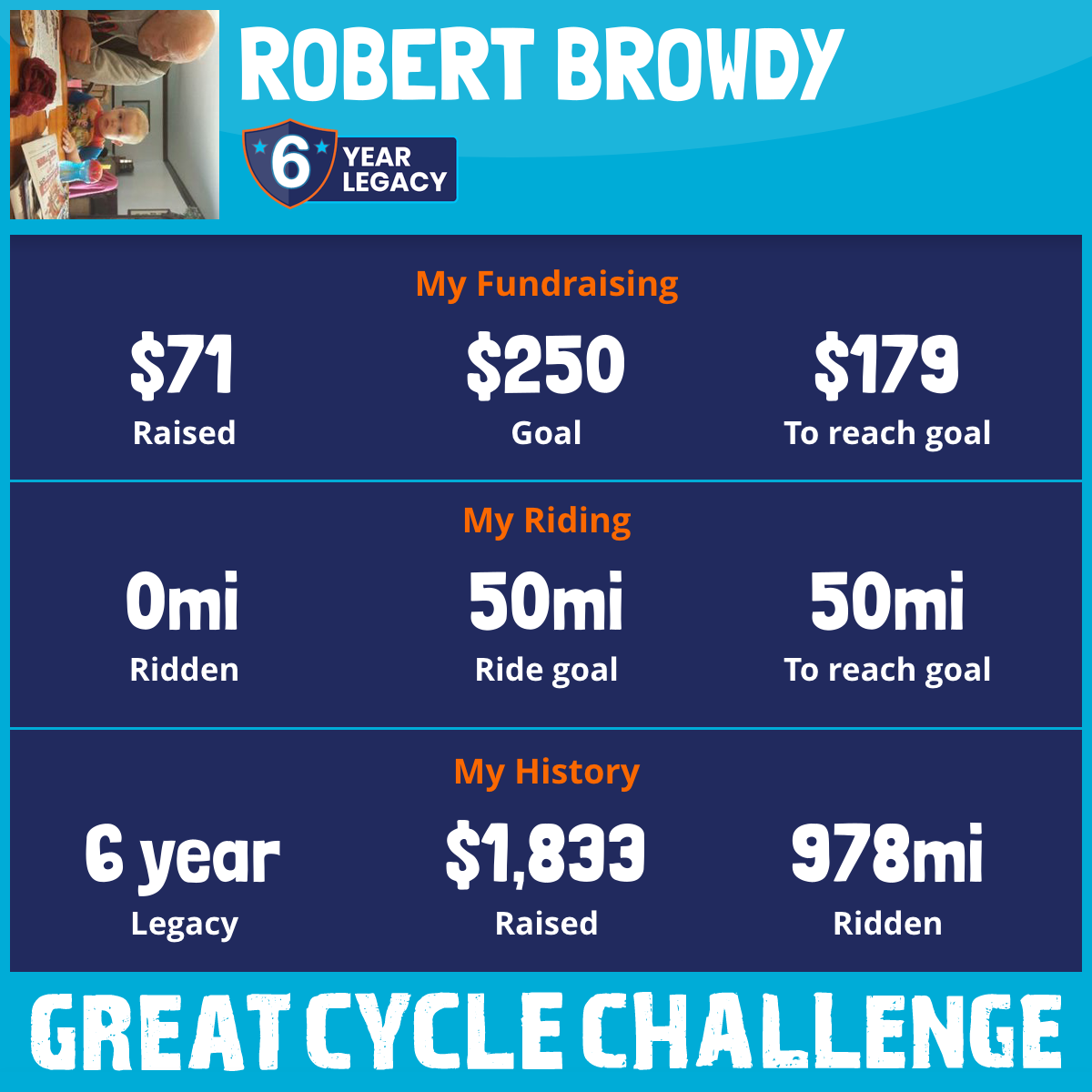 I am riding 50 mi for Yvonne Endicott. Please sponsor me and support my challenge to fight kids' cancer and save little lives.