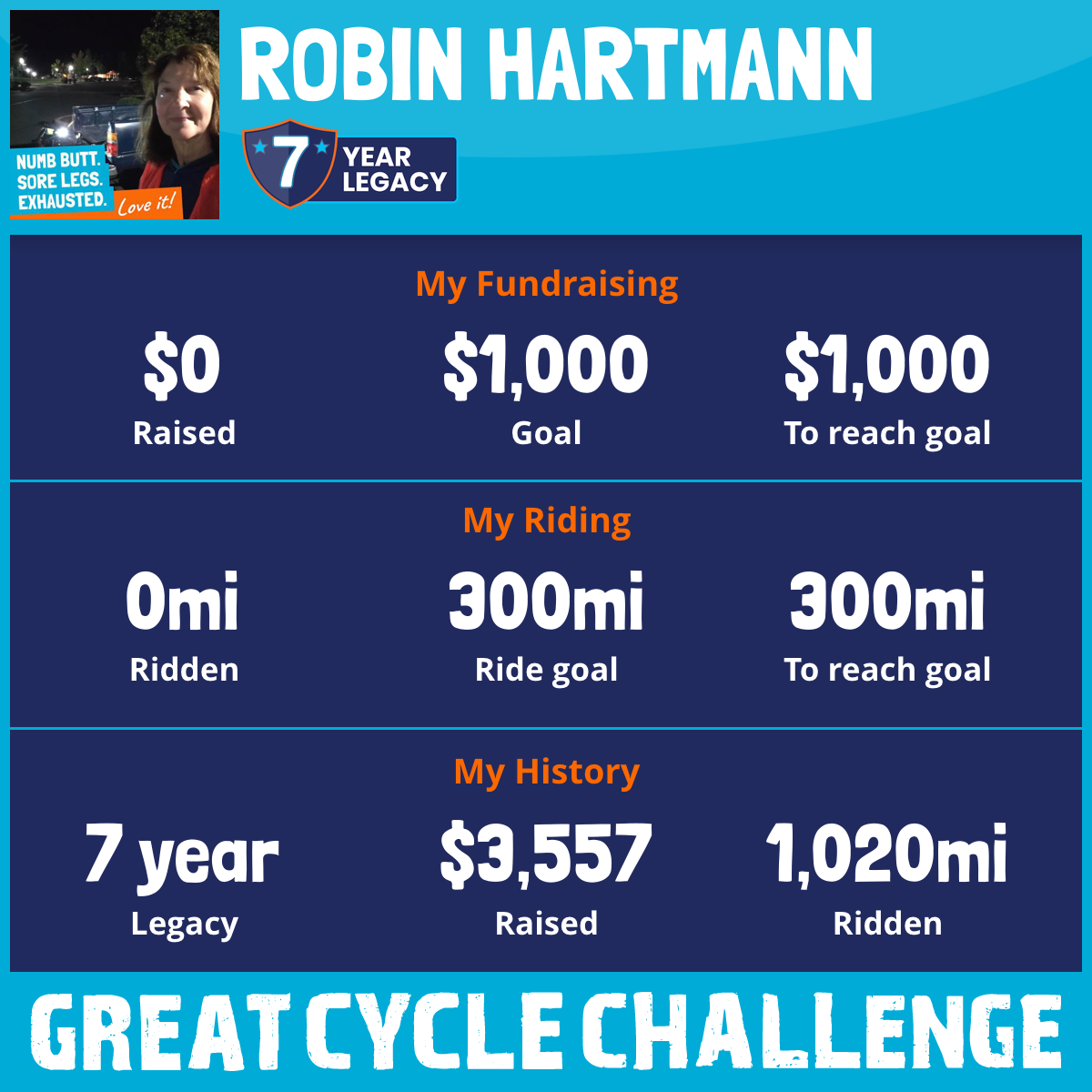 This September, I am once again taking part in the Great Cycle Challenge to fight kids' cancer! I feel blessed that in May 2021, I had both of my hips replaced and I am able to participate in this bike challenge to help others and ride with such comfort. It is a sign of what the medical community can do to help people, and these kids deserve to be helped. My mother, Joyce, overcame cancer with help from the medical community, too.