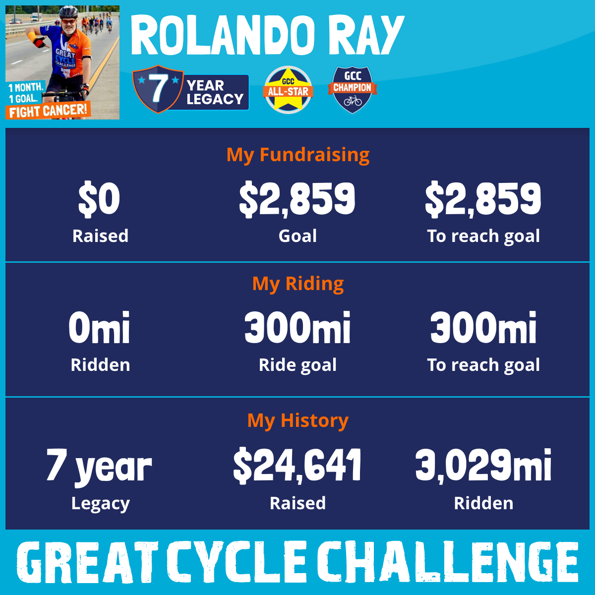 301 mi Ridden$4,562 Raised2024