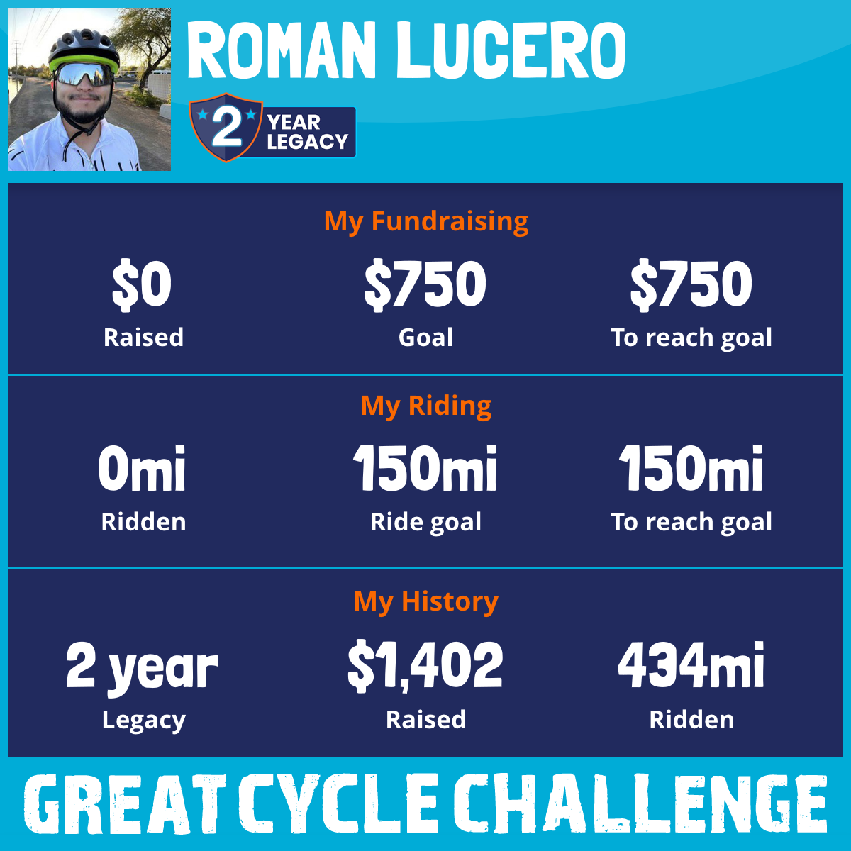 “Roman!!! Pedal like the wind (or at least like a slightly motivated breeze) for an amazing cause!! You’re awesome and you’re gonna have amazing calves after this.”