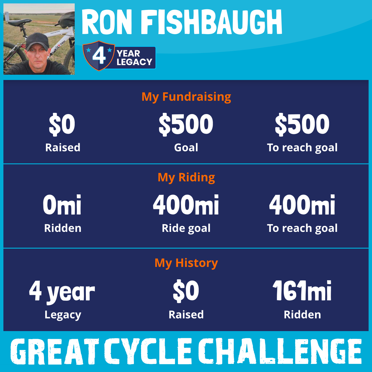 I am riding 400 mi in memory of Wyatt Schmaltz. Please sponsor me and support my challenge to fight kids' cancer and save little lives.