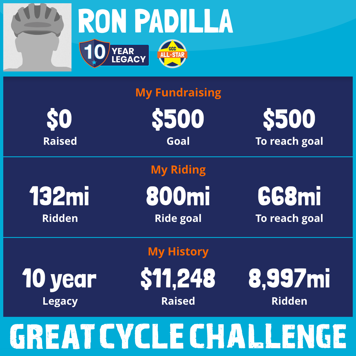 I am riding 800 mi to fight kids' cancer and save little lives. Please sponsor me to support my challenge!