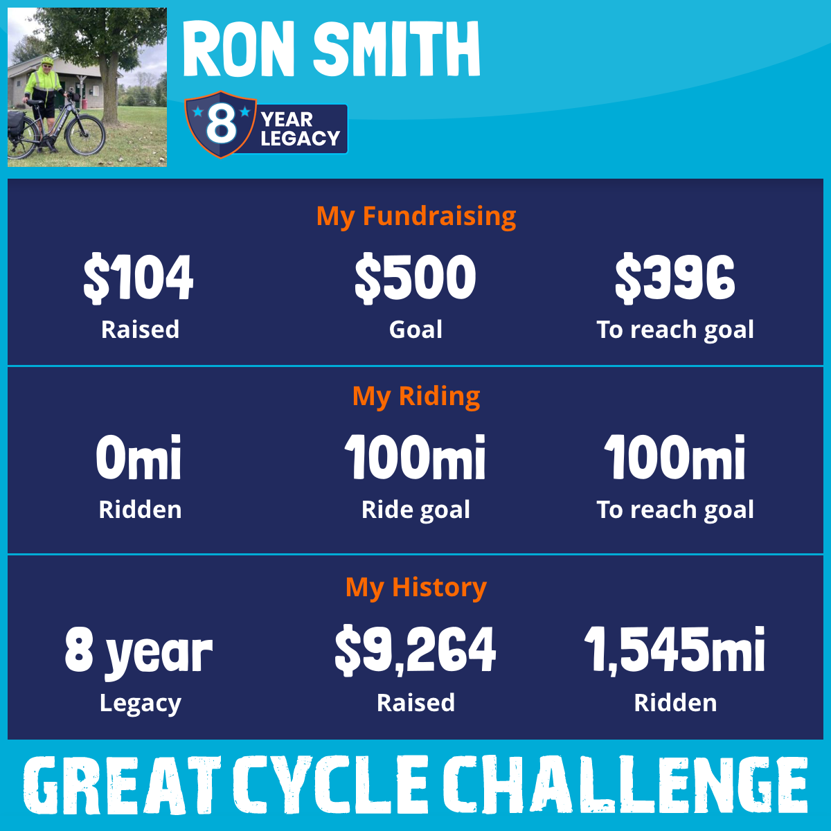 I am riding 150 mi in memory of Russ & Jim. Please sponsor me and support my challenge to fight kids' cancer and save little lives.