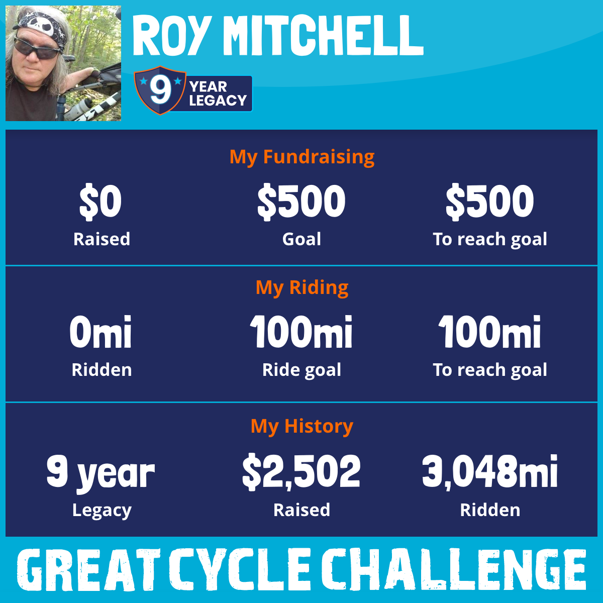 15 Sep 2025Due to some physical limitations, I am having touble riding this year. My great friend Cheri has offered to team up with me to achieve the goals.