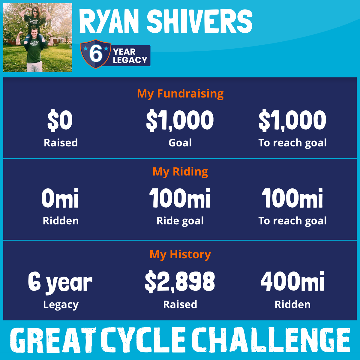 Every year I ride for Grant Crisp and every child who is going through or has gone through the fight with cancer. Though Grant’s fight has ended, during his fight he was able to show us all that in the hardest of times; determination, faith, and hope will give you strength. These are the beliefs I will carry with me as I ride 100 miles this month in his honor.