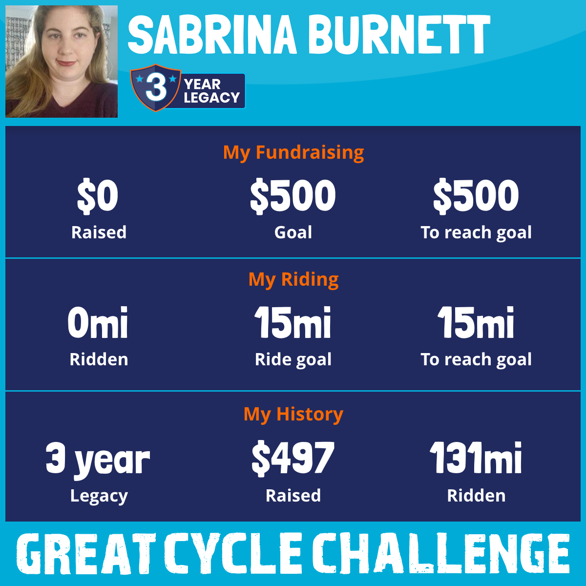I am riding 15 mi for this challenge. Please sponsor me and support my challenge to fight kids' cancer and save little lives.