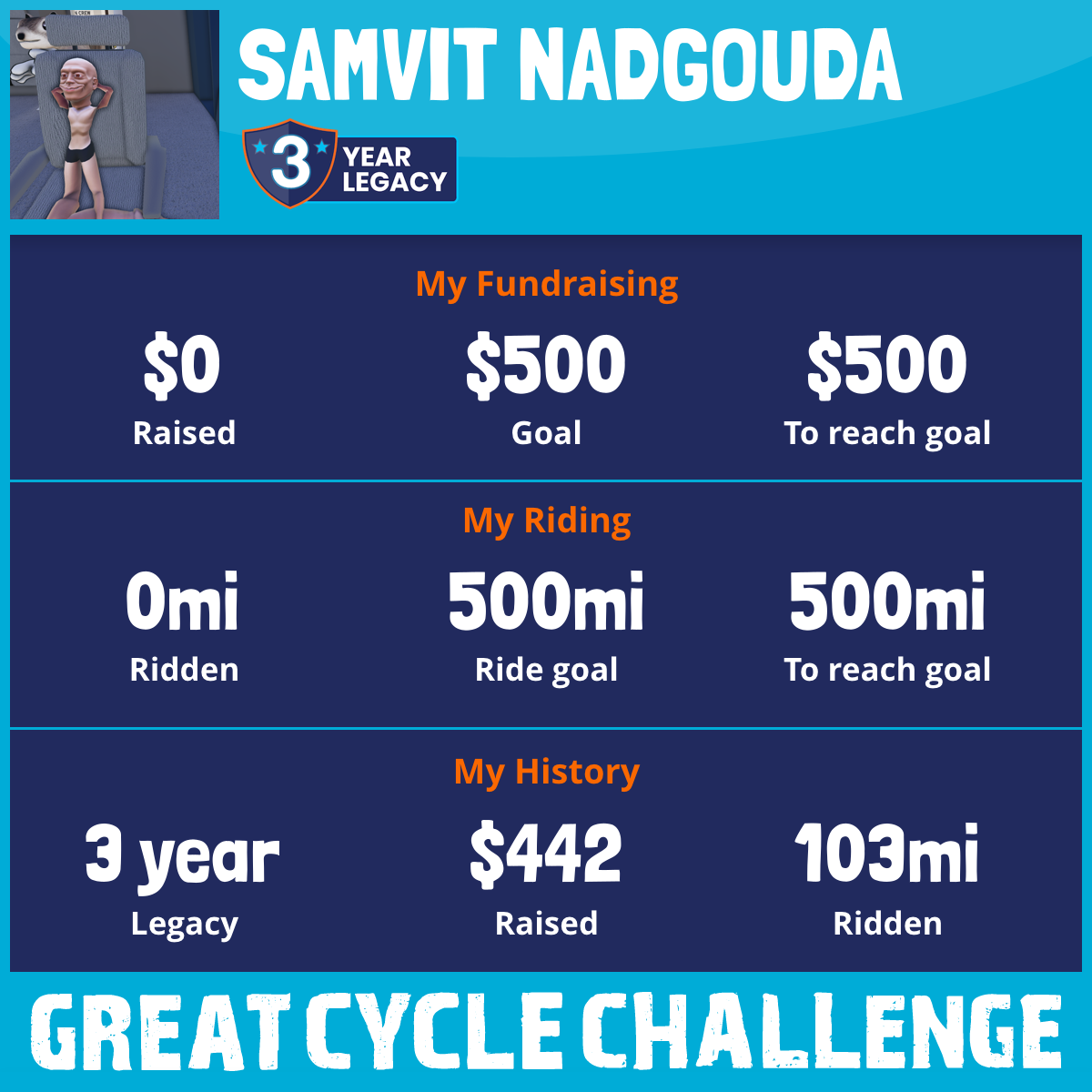 103 mi Ridden$442 Raised2020