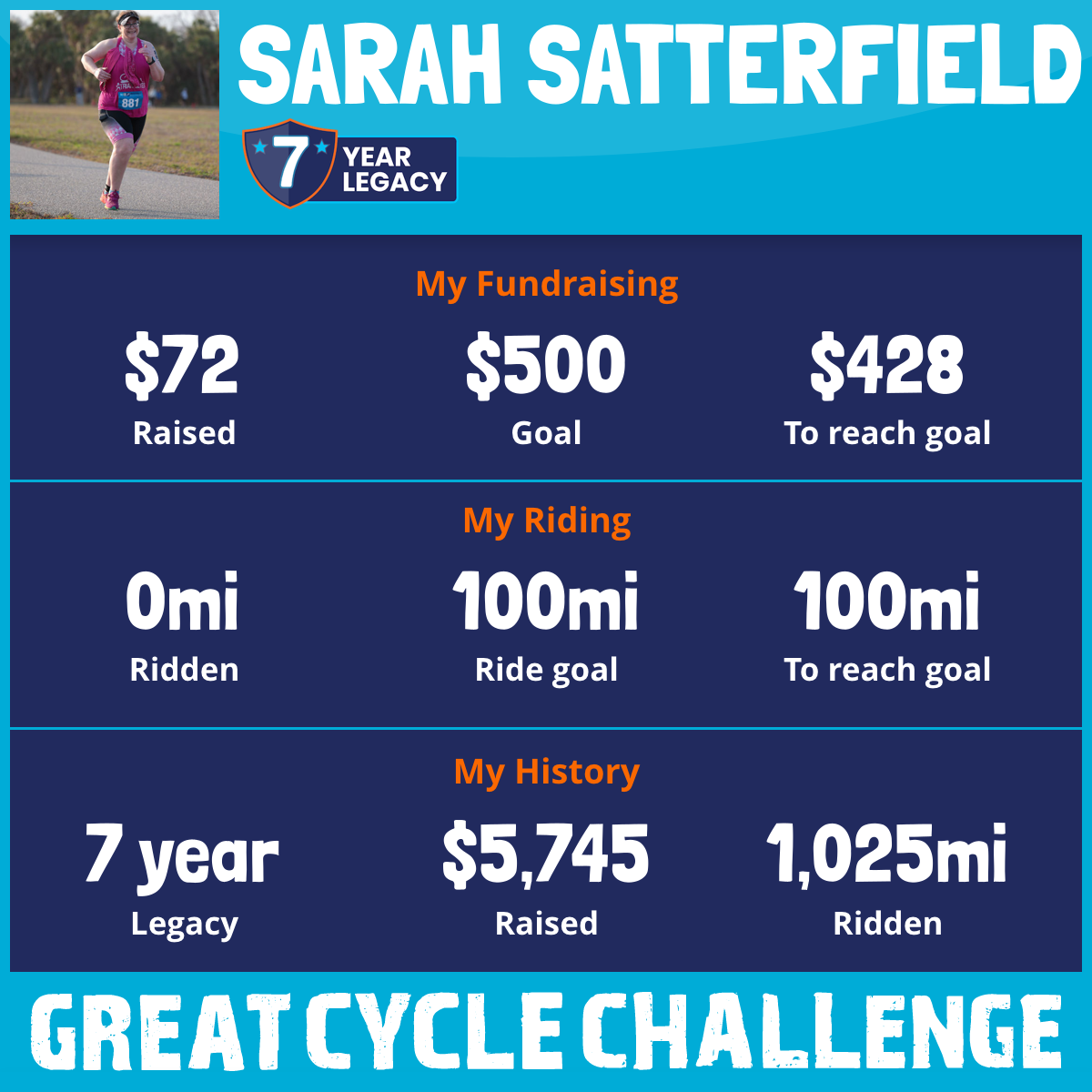 I am riding 30 mi for Debra, Ralph, Ann, James, Big Daddy, Wingnut, Bobby, and Dee. Please sponsor me and support my challenge to fight kids' cancer and save little lives.