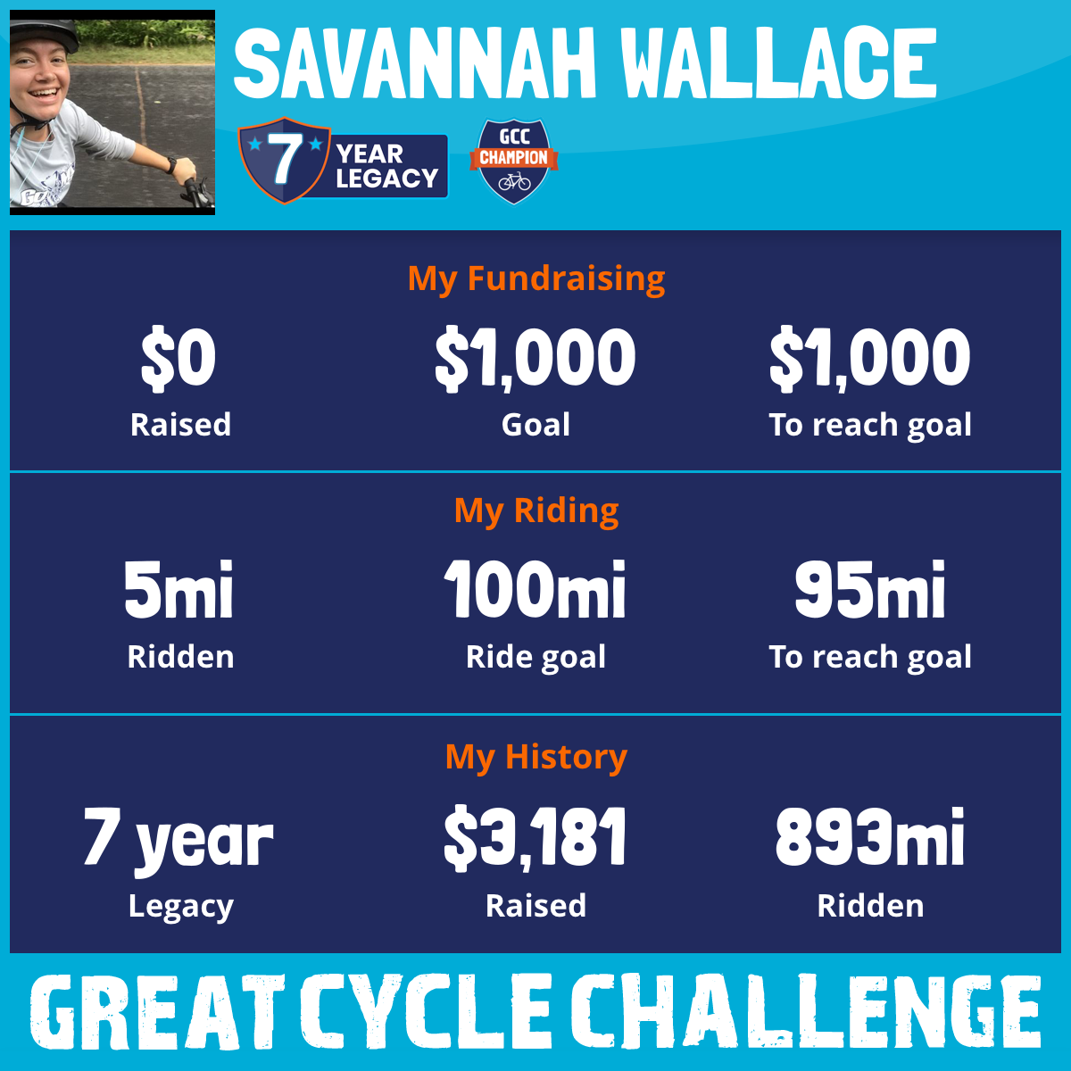 300 mi Ridden$1,116 Raised2021
