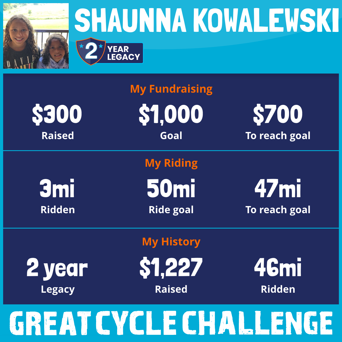 The least I can do, is ride in her honor and help raise funds for all the children that are impacted by childhood cancer. Please lend your support!