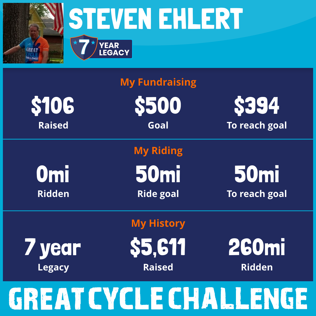 50 mi Ridden$1,300 Raised2022