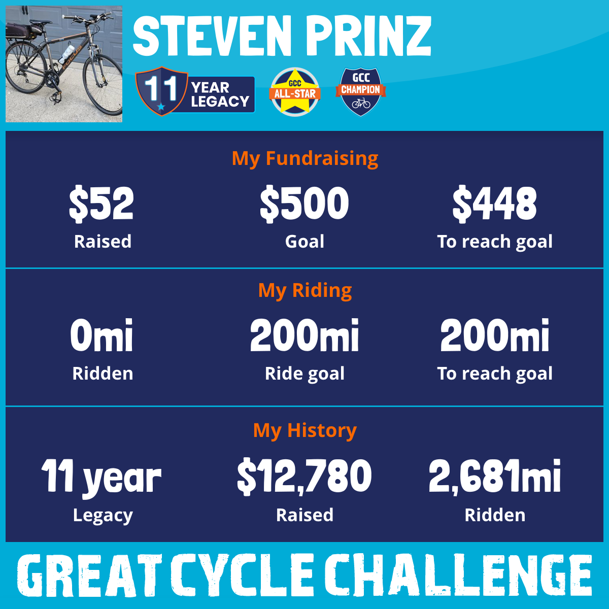 Through the month of September, I have pledged to ride my bike at least 200 miles as part of the Great Cycle Challenge to fight kids' cancer!