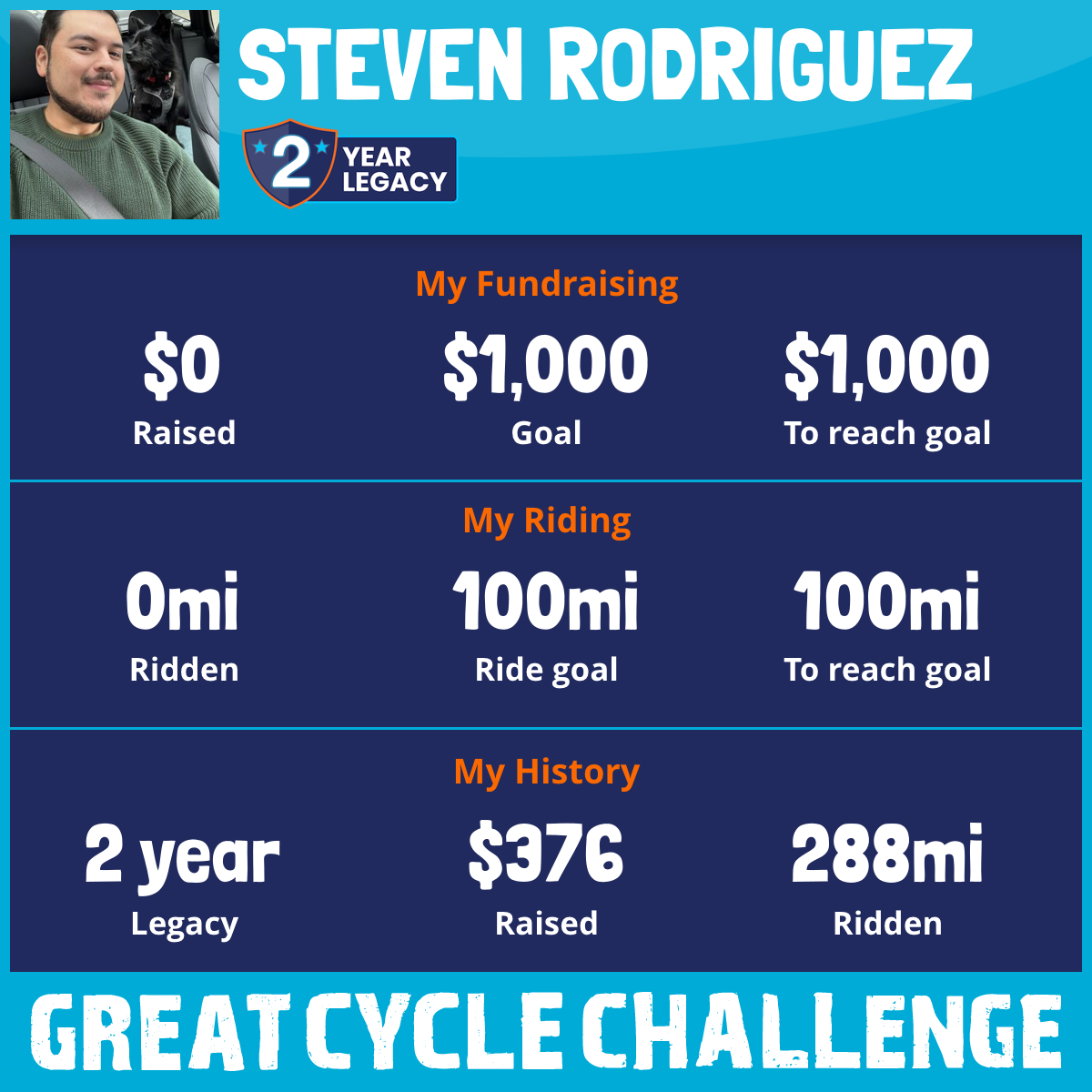288 mi Ridden$376 Raised2021
