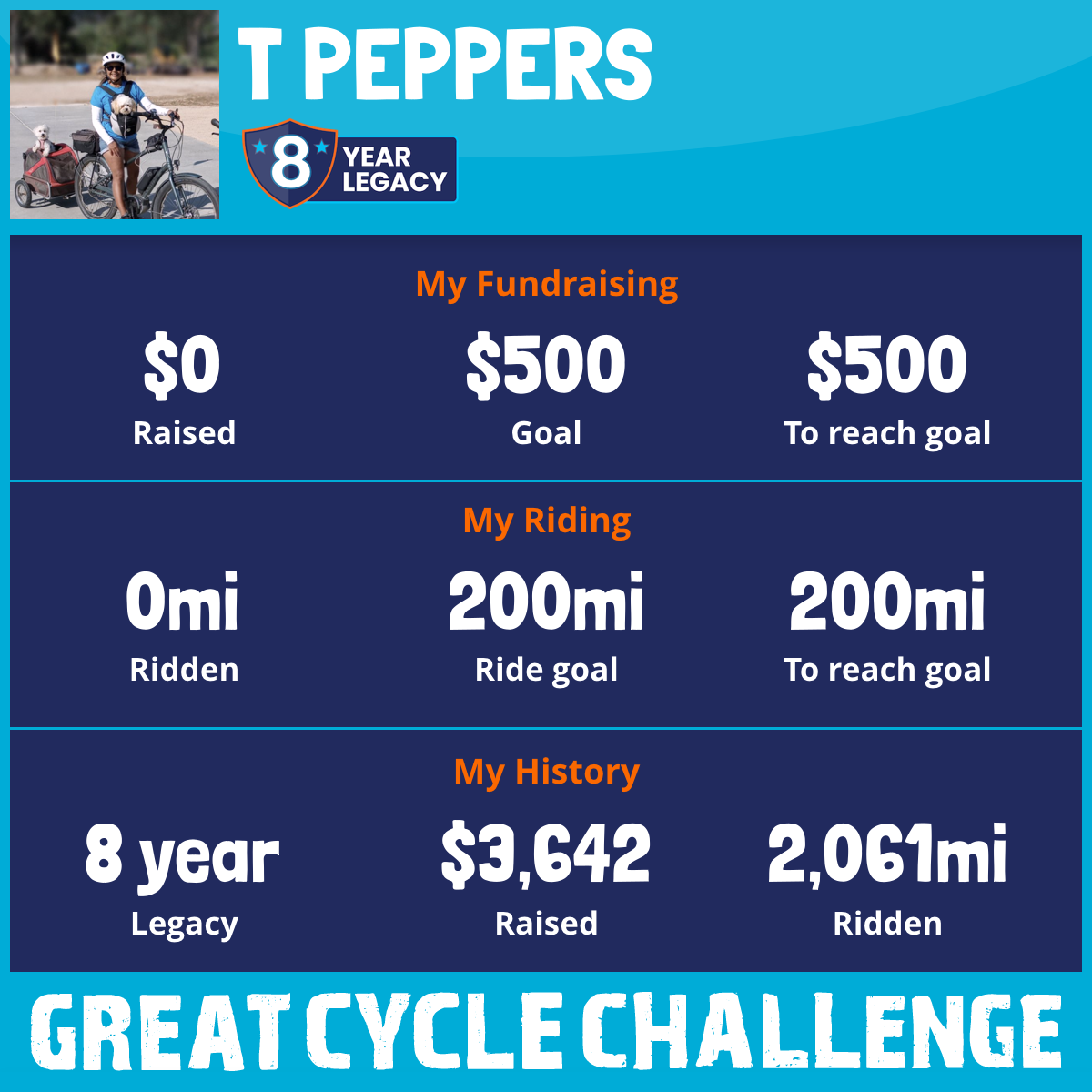 I am riding 300 mi for Pep. Please sponsor me and support my challenge to fight kids' cancer and save little lives.