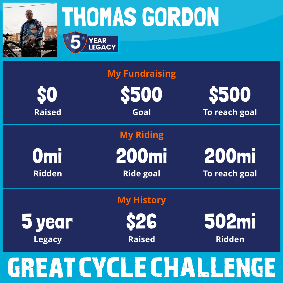 I am riding 200 mi in memory of my dad, Thomas. Please sponsor me and support my challenge to fight kids' cancer and save little lives.