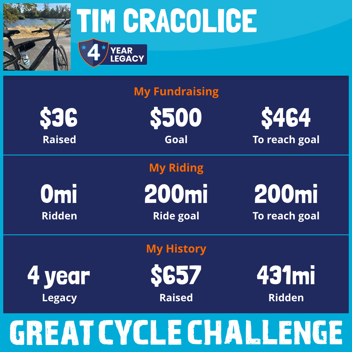 I am riding 200 mi to fight kids' cancer and save little lives. Please sponsor me to support my challenge!