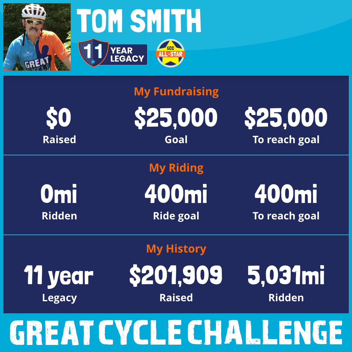 During this fundraiser in the last 10 years, I've ridden over 5,000 miles and, through your generous support, raised over $200,000.00. The overall fundraiser has raised over $80,000,000.00. Thanks in advance for your amazing support.
