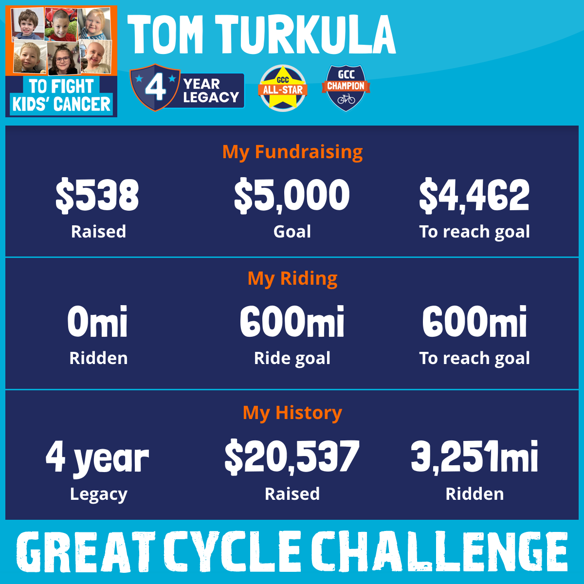 During September 2025 I will for the fourth consecutive year, join other cyclists and take part in the Great Cycle Challenge to fight kids' cancer!