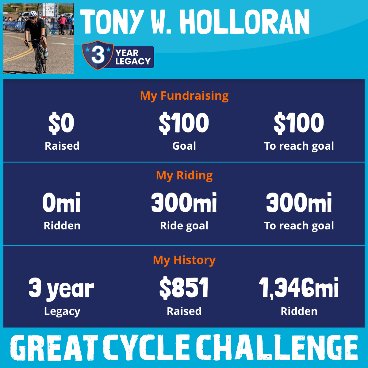 I am riding 300 mi in memory of Bill Holloran Sr.. Please sponsor me and support my challenge to fight kids' cancer and save little lives.