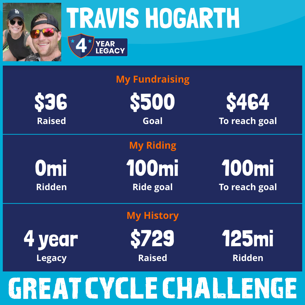 I am riding 100 mi in memory of Wilks. Please sponsor me and support my challenge to fight kids' cancer and save little lives.