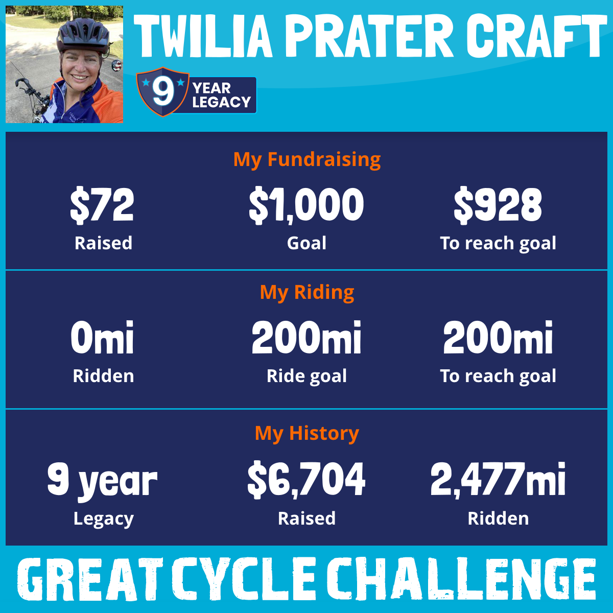 853 mi Ridden$1,072 Raised2018