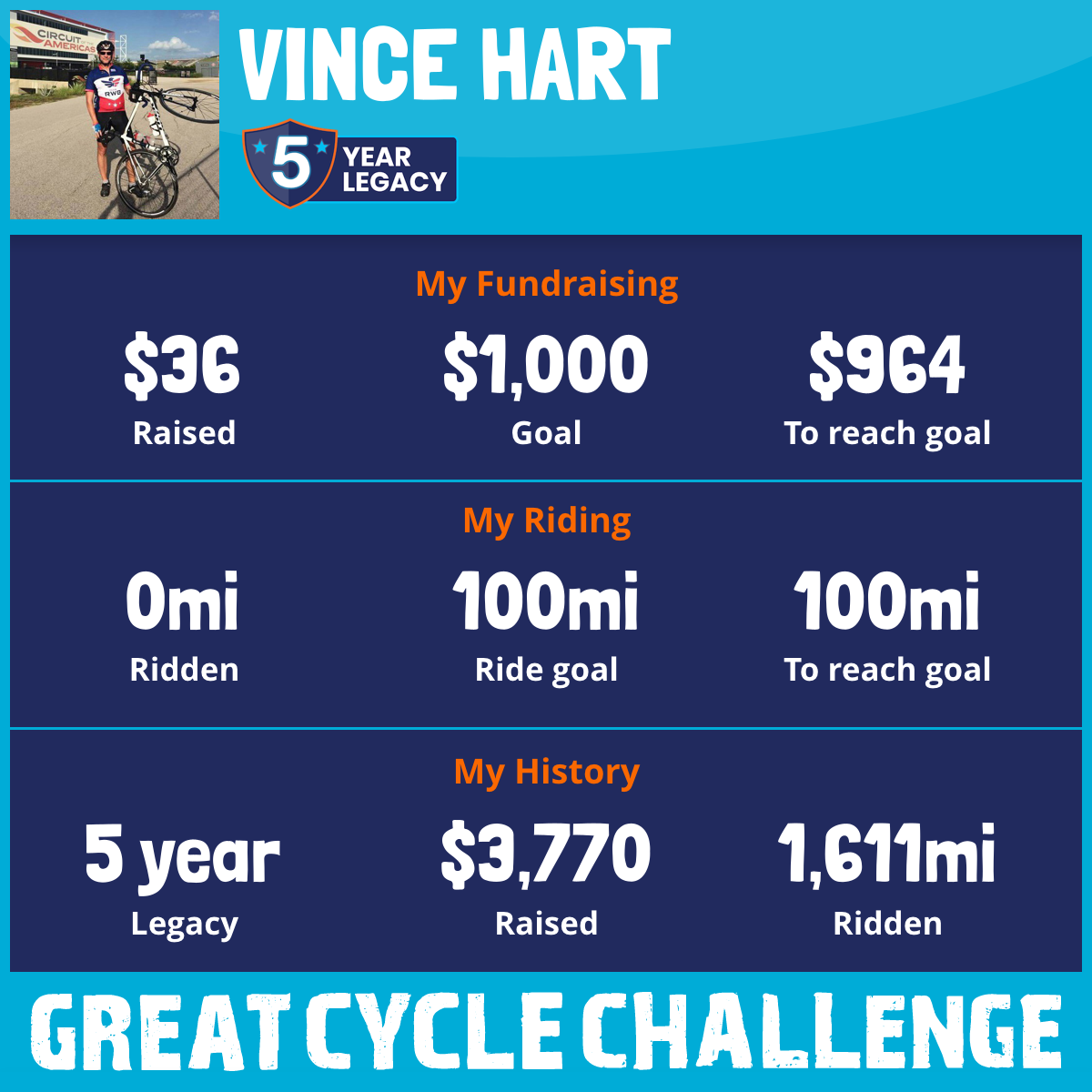 631 mi Ridden$1,502 Raised2021