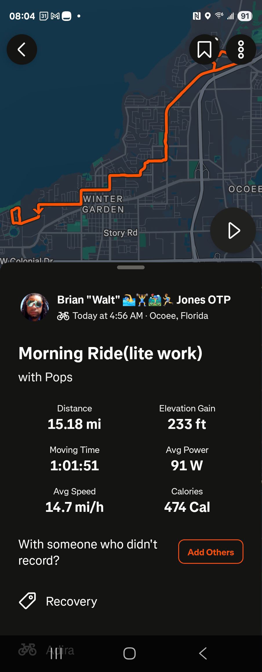 15.0 mi ride - lite work - Wednesday, September 10, 2025