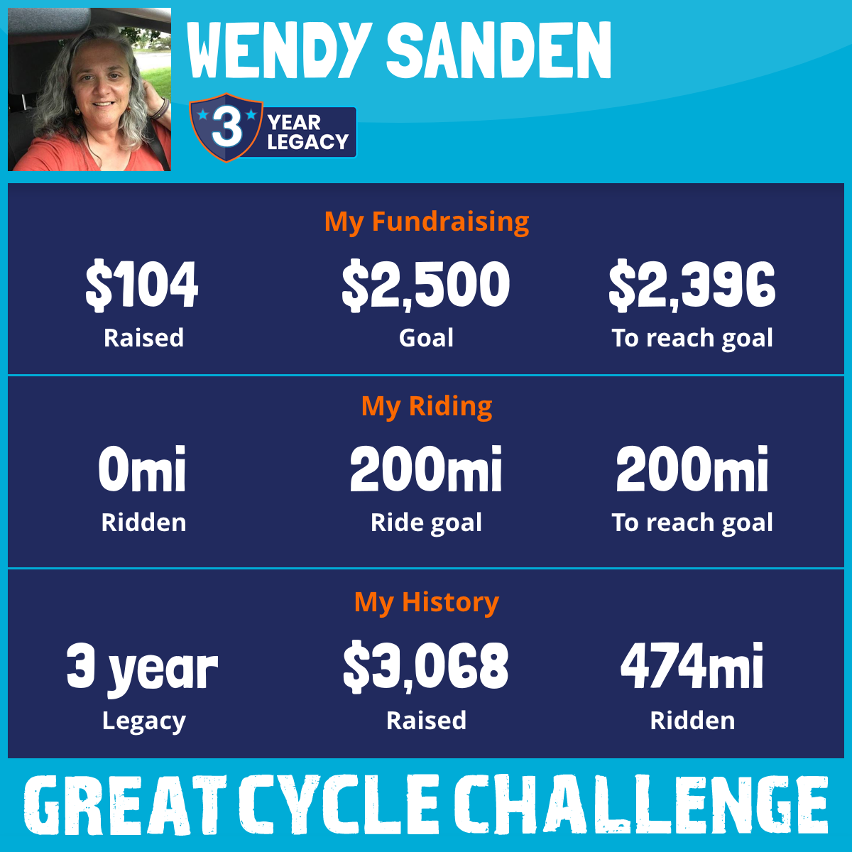 I've raised $0 My goal is $2,500 Donate Now