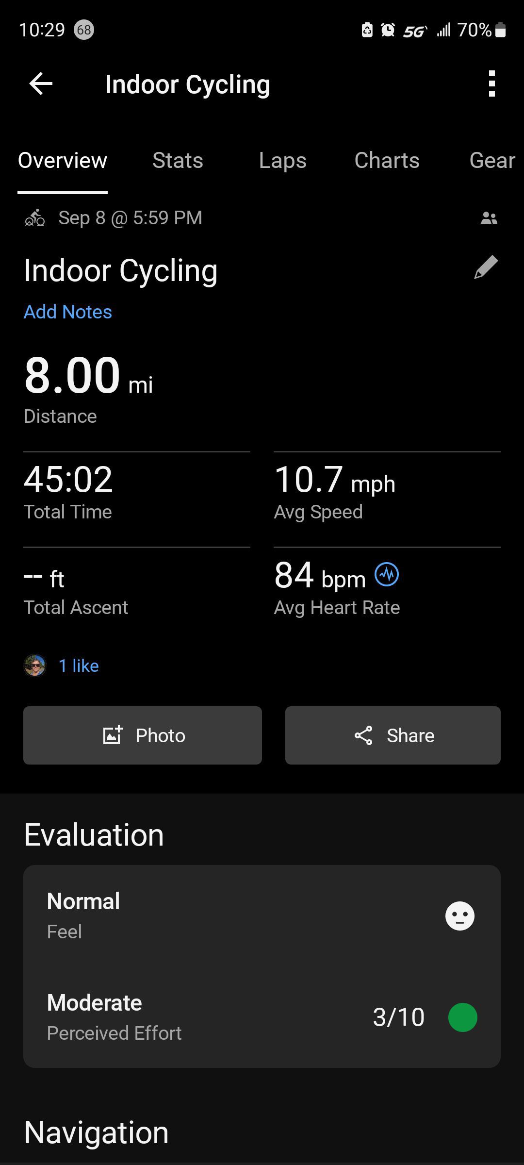 8.0 mi ride - Peloton ride - Monday, September 8, 2025