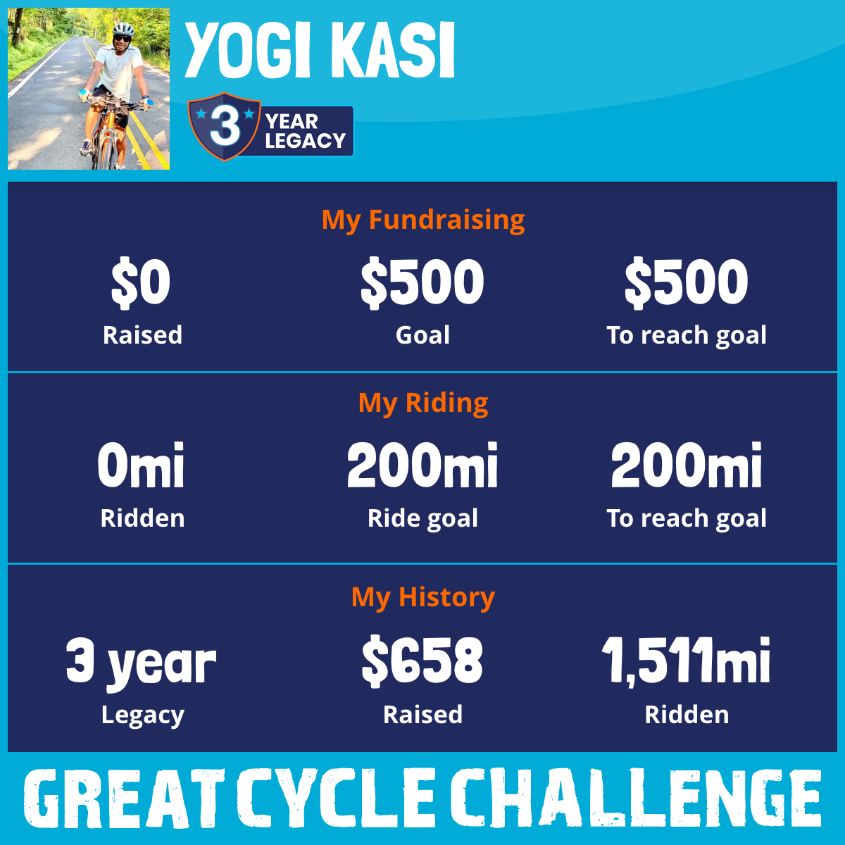 1,254 mi Ridden$658 Raised2020