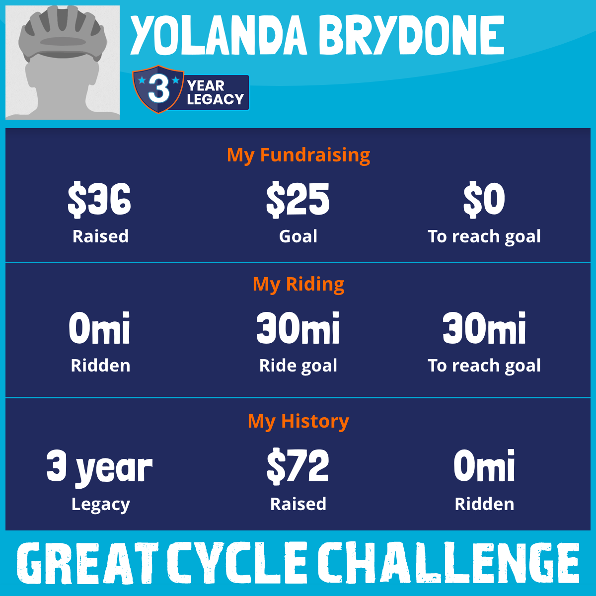 I am riding 30 mi in memory of my husband, James Brydone. Please sponsor me and support my challenge to fight kids' cancer and save little lives.