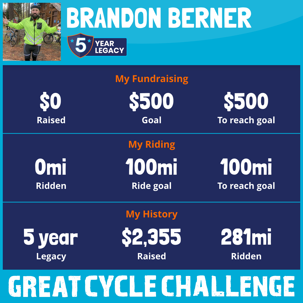 I am riding 100 mi for Darrell. Please sponsor me and support my challenge to fight kids' cancer and save little lives.
