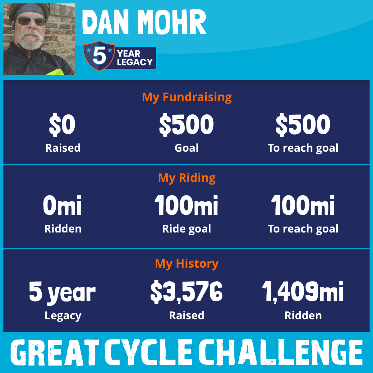 376 mi Ridden$1,364 Raised2021