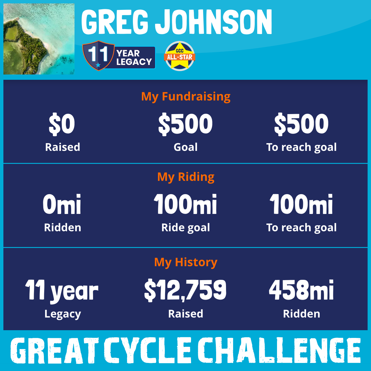This September, I am taking part in the Great Cycle Challenge to fight kids' cancer! Why? Because right now, cancer is the biggest killer of children from disease in the United States. Over 15,700 children are diagnosed every year, and sadly, 38 children die of cancer every week. Kids should be living life, not fighting for it. So I am raising funds through my challenge to help these kids and support Children's Cancer Research Fund to allow them to continue their work to develop lifesaving treatments and find a cure for childhood cancer. Please support me by making a donation to give these kids the brighter futures they deserve. Your support will change little lives. Thank you. This September, I am taking part in the Great Cycle Challenge to fight kids' cancer! Why? Because right now, cancer is the biggest killer of children from disease in the United States. Over 15,700 children are diagnosed every year, and sadly, 38 children die of cancer every week. Kids should be living life, not fighting for it. So I am raising funds through my challenge to help these kids and support Children's Cancer Research Fund to allow them to continue their work to develop lifesaving treatments and find a cure for childhood cancer. Please support me by making a donation to give these kids the brighter futures they deserve. Your support will change little lives. Thank you.