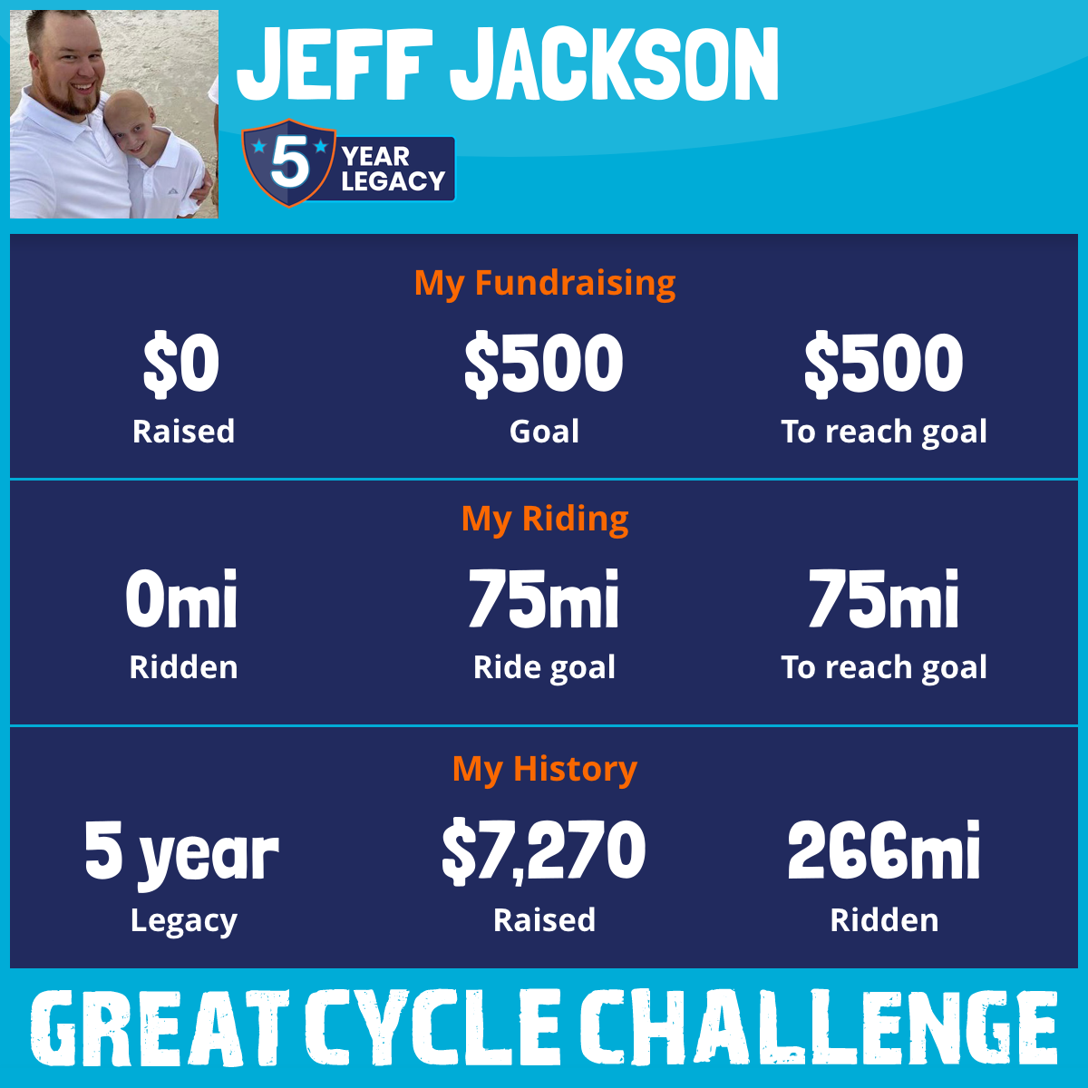 I am riding 75 mi in memory of Parker Jackson. Please sponsor me and support my challenge to fight kids' cancer and save little lives.