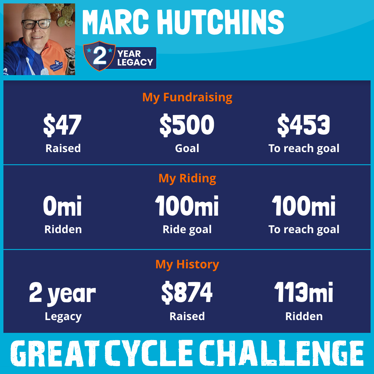 I am taking part in the Great Cycle Challenge to fight kids' cancer!