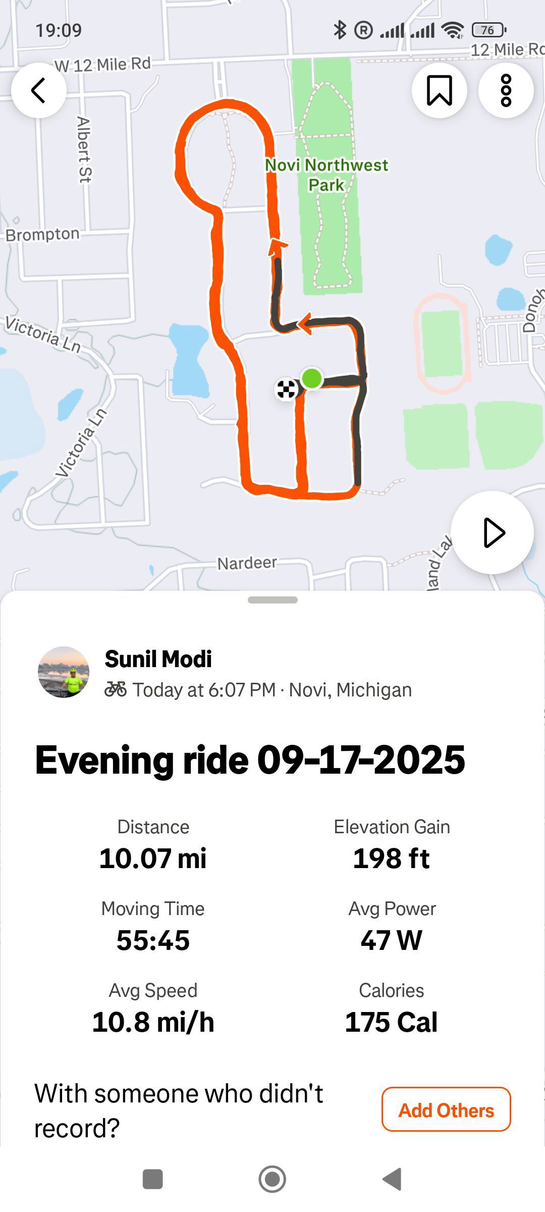 10.1 mi ride - Evening ride 17 Sep 2025 - GCC ride#15 - Wednesday, September 17, 2025