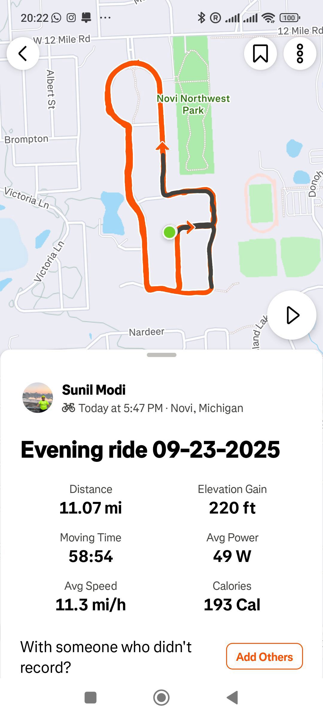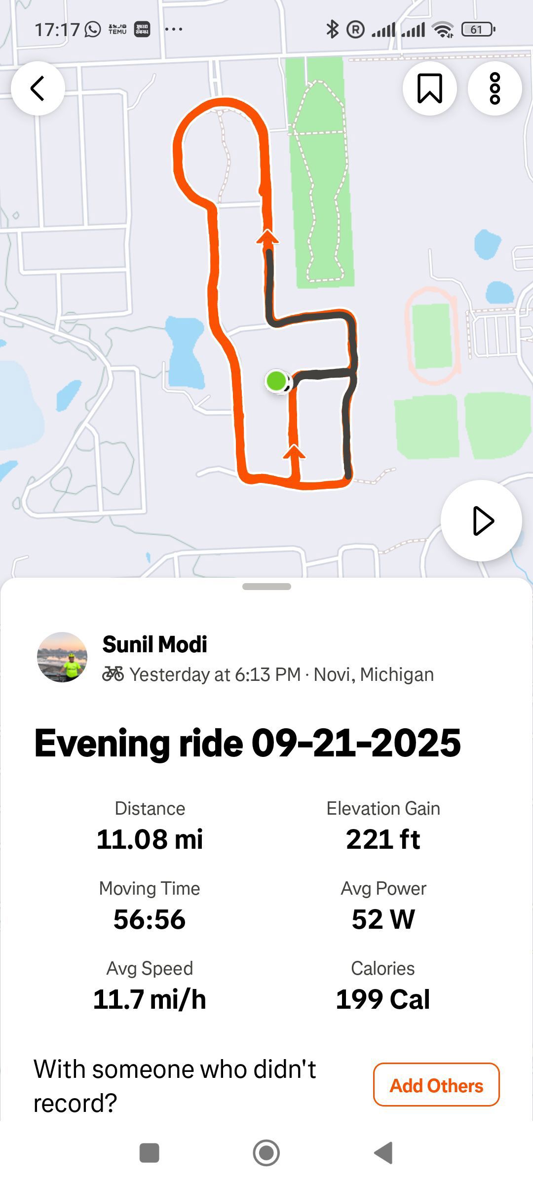 5.4 mi ride - Evening ride2 7 Sep 2025 - GCC ride#20 - Saturday, September 27, 2025
