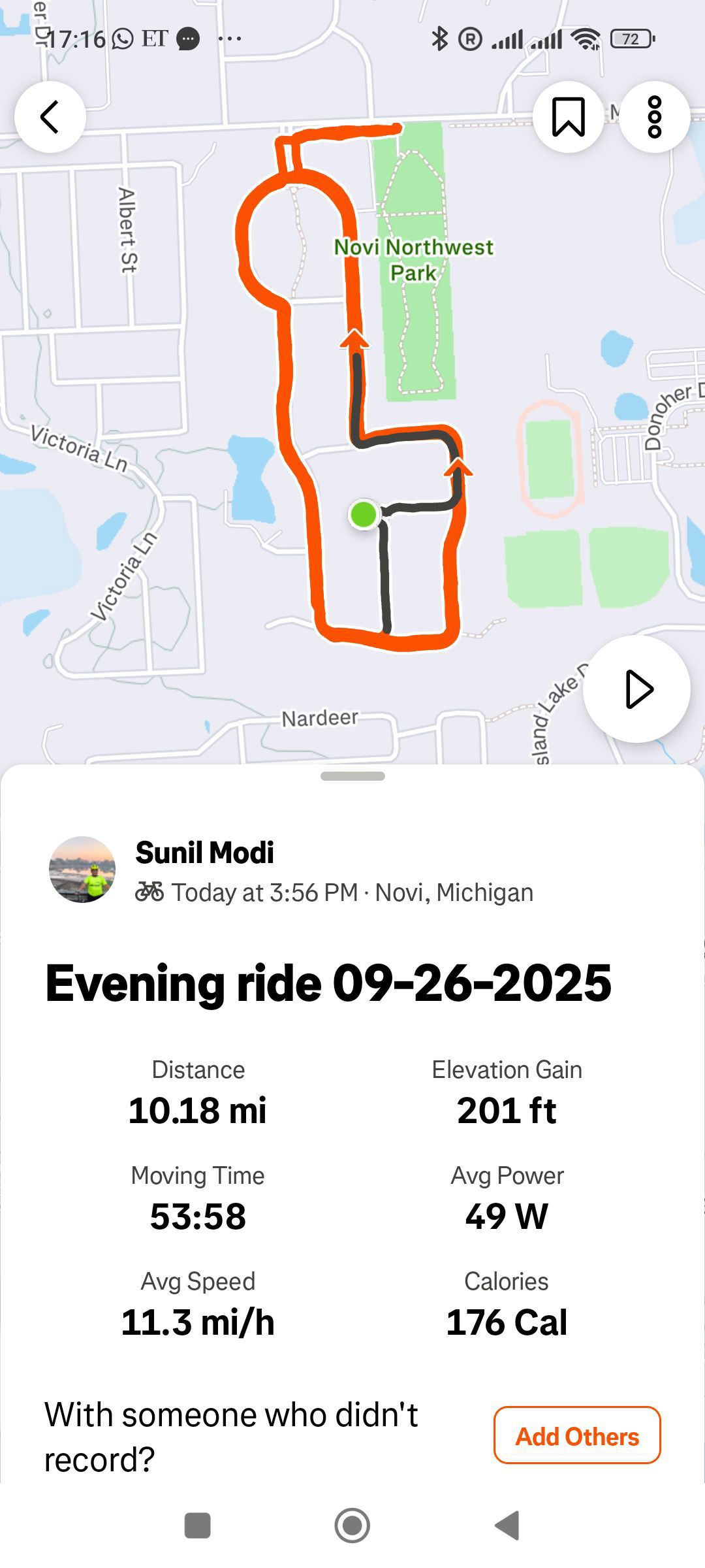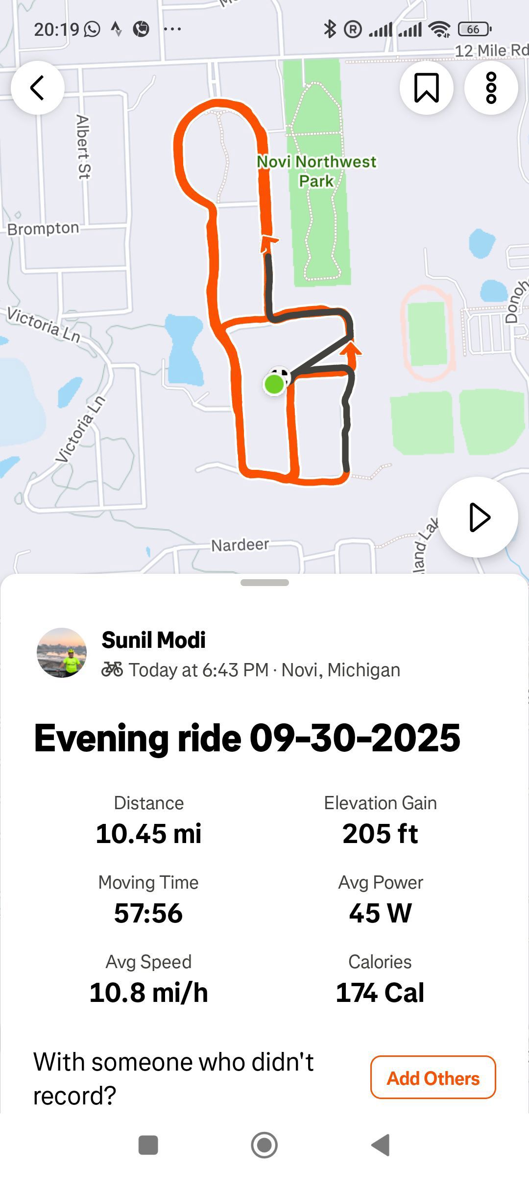 10.2 mi ride - Evening ride 26 Sep 2025 - GCC ride#19 - Friday, September 26, 2025